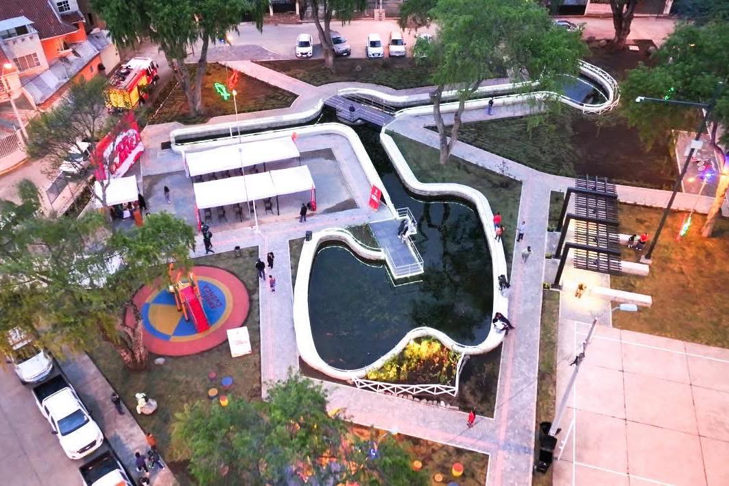 La obra se complementa con la instalación de una pérgola de estancia, mobiliario biosaludable y un área de juegos infantiles compuesta por tres estaciones, equipada con pavimento de caucho para mayor seguridad y confort de niñas y niños.